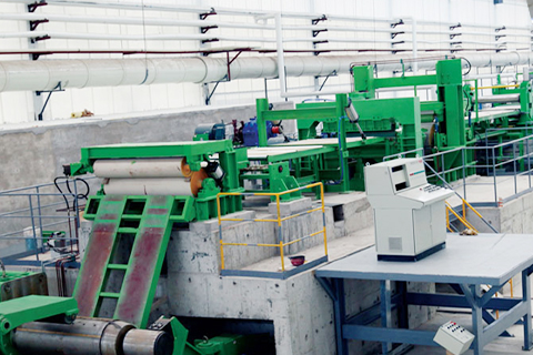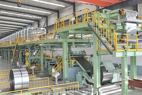 涂彩鋼板生產線年產能25萬噸,可生產規格為0.2~1.2MM*800~1250MM,生產線采用二涂二烘的輥涂工藝復合而成?;宀捎帽竟旧a的無鋅花鍍鋅板或鍍鋁鋅硅板,具有優良的耐蝕性、力學性、外觀裝飾性,應用于建筑、家電等新興領域。